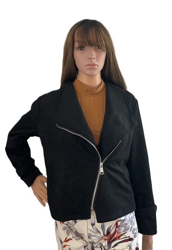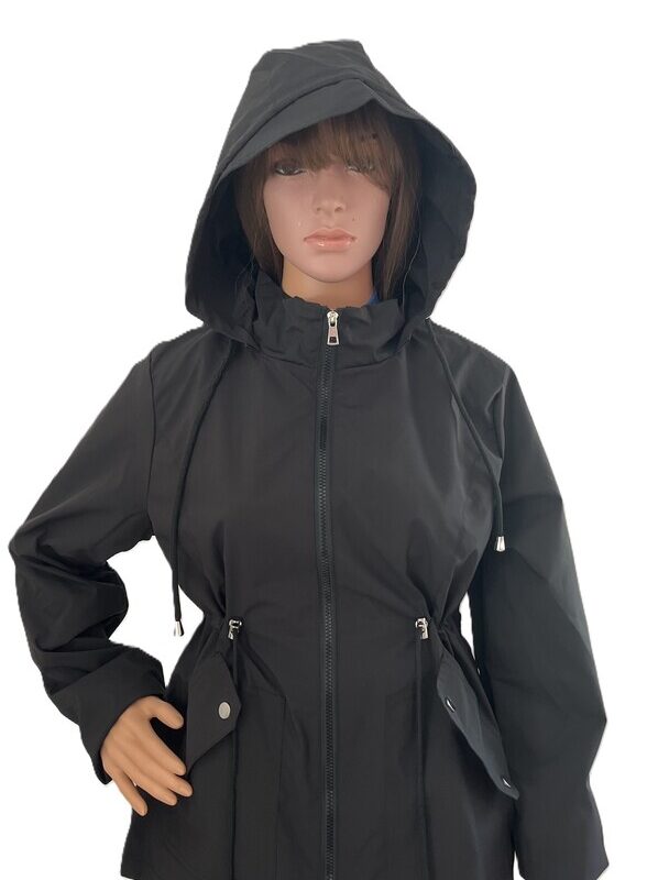 Това стилно черно яке с качулка е перфектният избор за тези, които искат да добавят модерен и удобен акцент към своя гардероб. Със своята мека текстура и цип отпред, то е подходящо както за ежедневието, така и за по-специални поводи.