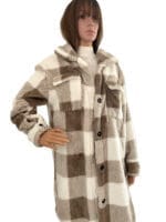 Дамско карирано палто в бяло и кафяво – елегантност и комфорт